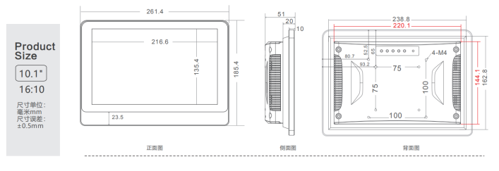 FY-8101 10.1寸四代安卓一体机,采用安卓6.0版本操作系统,A64 四核 1.5GHZ处理器,前面板IP65防尘防水,适合 -10℃~60℃工作环境;支持COM、USB、HDMI、WIFI网口接口。
