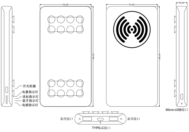读标指示灯:绿灯闪烁,表示读到标签数据