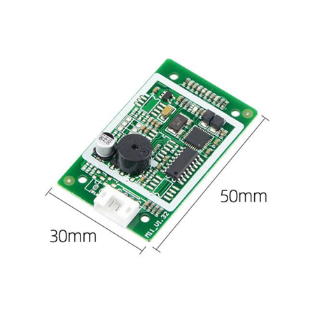 ●人性化设计,蜂鸣器+指示灯作为提醒动作,板载电源 LED 灯/读卡LED 指示灯,方便查看上电状态以及读卡响应状态。